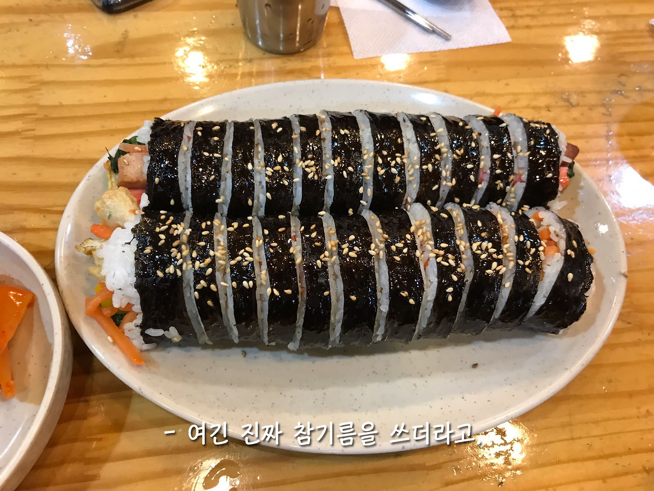 수유리 우동집의 얼큰 우동도 맛있었지만 나는 이날 김밥이 너무 맛있어서 잊을 수가 없었다. 응석 오빠가 계속 '진짜 참기름'을 쓰는 집이라고 외쳤는데 그래서 그런가, 진짜 맛있었다! 진짜 참기름 김밥!