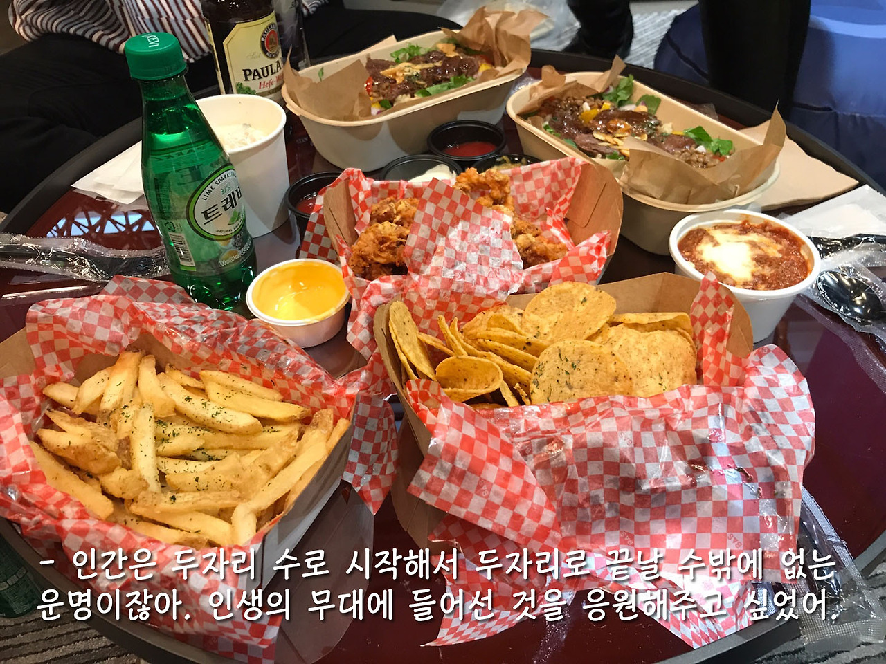 화요일은 서은아 이사님과 유빈 님과 혜원 님, 기현님과 만나는 날이었다. 아쉽게도 급 부산 출장을 가게 된 관승 님이 빠졌고 우리는 눈이 펑펑 오는 화요일에 페이스북 코리아 사무실에서 모였다. 건강한 맛이 나는 샐러드와 여러 음식들을 포장해와서 사무실 안 조그만 룸에서 우리끼리 이야기를 나눴다.