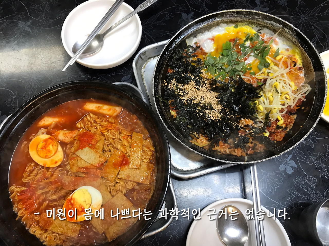 감기가 점점 심해져서 큰일이다. 뀰도 감기가 걸렸다. 우리 둘은 초기에 이 감기를 잡아야 한다며 점심시간에 병원을 다녀왔다. 병원 근처에 장미상가가 있길래 뀰이 뽀빠이 분식에 데려와줬다. 뀰은 자주 오는 것 같았지만 나는 처음 온 곳이다. 왜 뀰이 이렇게 이곳을 자주 왔었는지 알 것 같았다. 상가 분위기도 옛날 학교 앞 문방구가 생각나서 좋았고 떡볶이와 볶음밥도 너무 맛있어서 감기가 뚝 떨어지는 기분이었다. (하지만 떨어지지 않았지...) 그런데 뀰이 이 맛은 모두 '미원'을 통해 탄생한 거라며 자기는 세상에서 미원을 넣은 음식이 가장 맛있다고 한다. (응?)