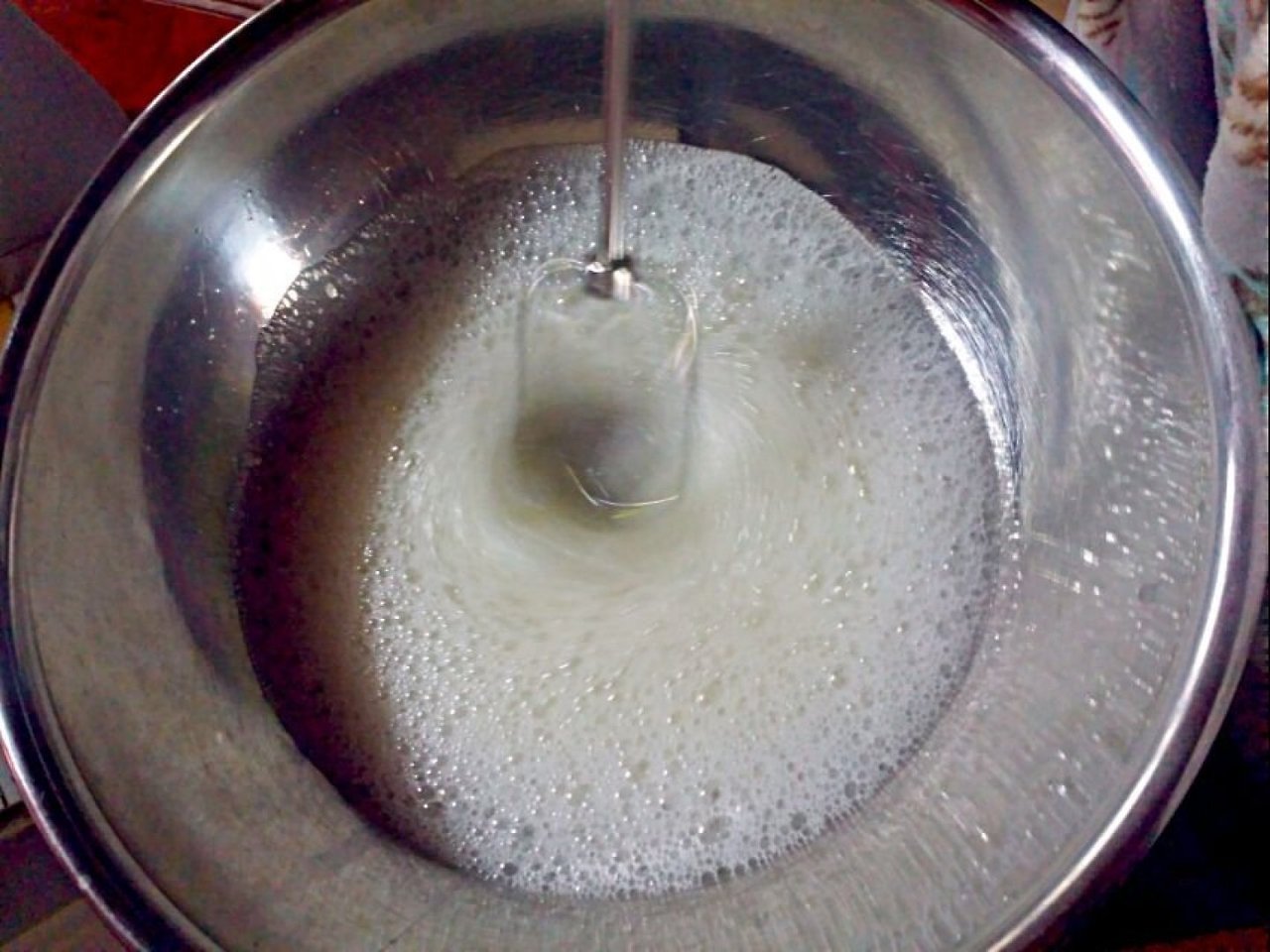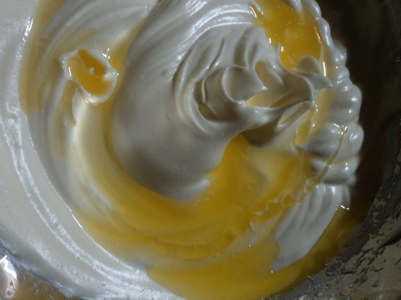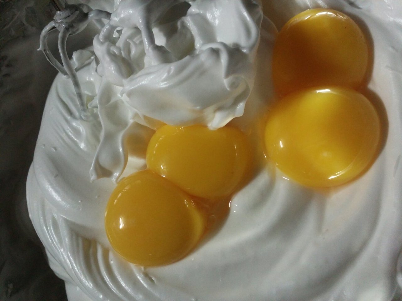 3. 계란은 흰자 노른자 분리하고 흰자먼저 풀어줍니다. 거품이 올라오면 설탕을2~3번에 나눠서 넣어주면서 머랭을 올려줍니다.