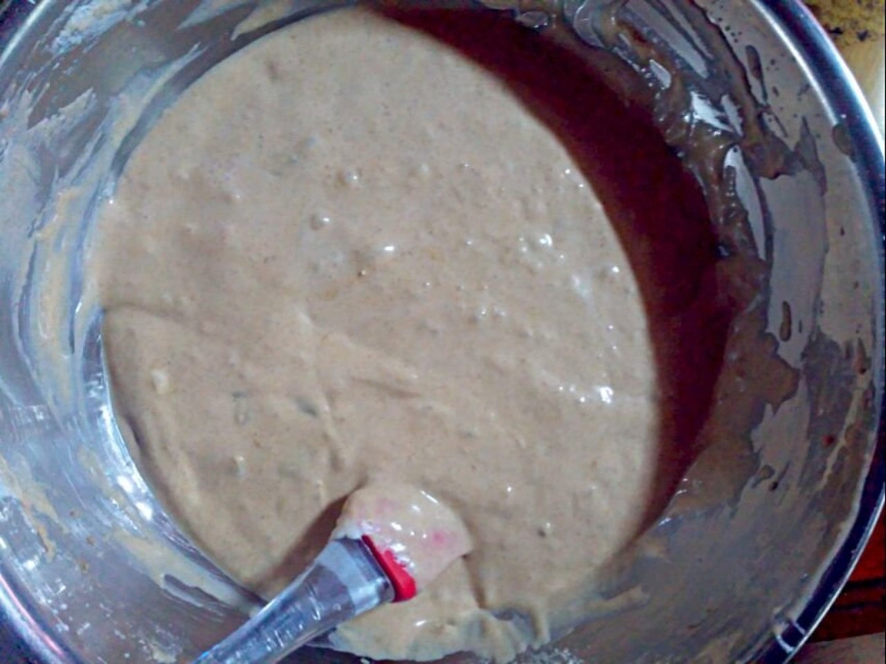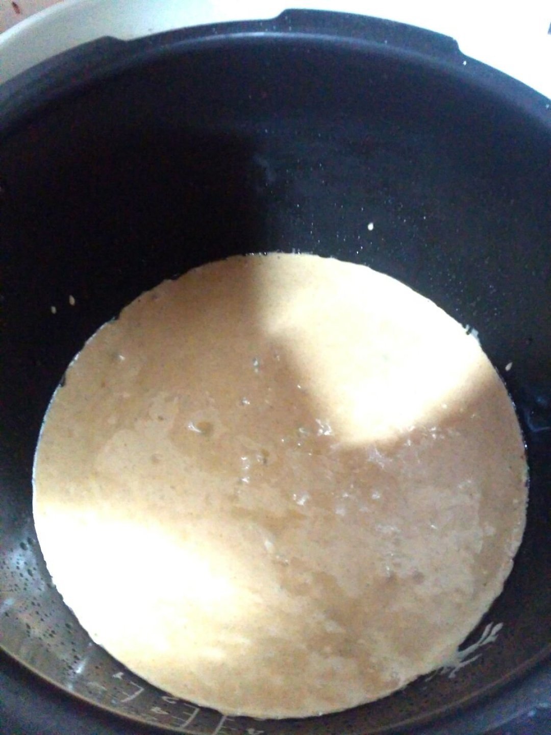 8. 밥통에 버터 발라주고 반죽 부어주고 바닥에 탕탕쳐서 기포한번 빼준 다음 만능찜 40분 or 취사2번 돌려줍니다