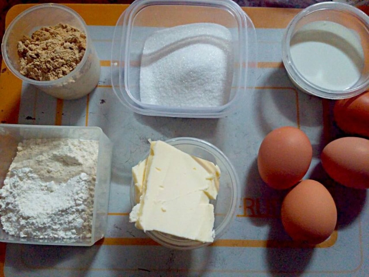 재료-미숫가루60g 박력분60g 설탕100g 우유60g 카놀라유40g 계란4개 견과류조금