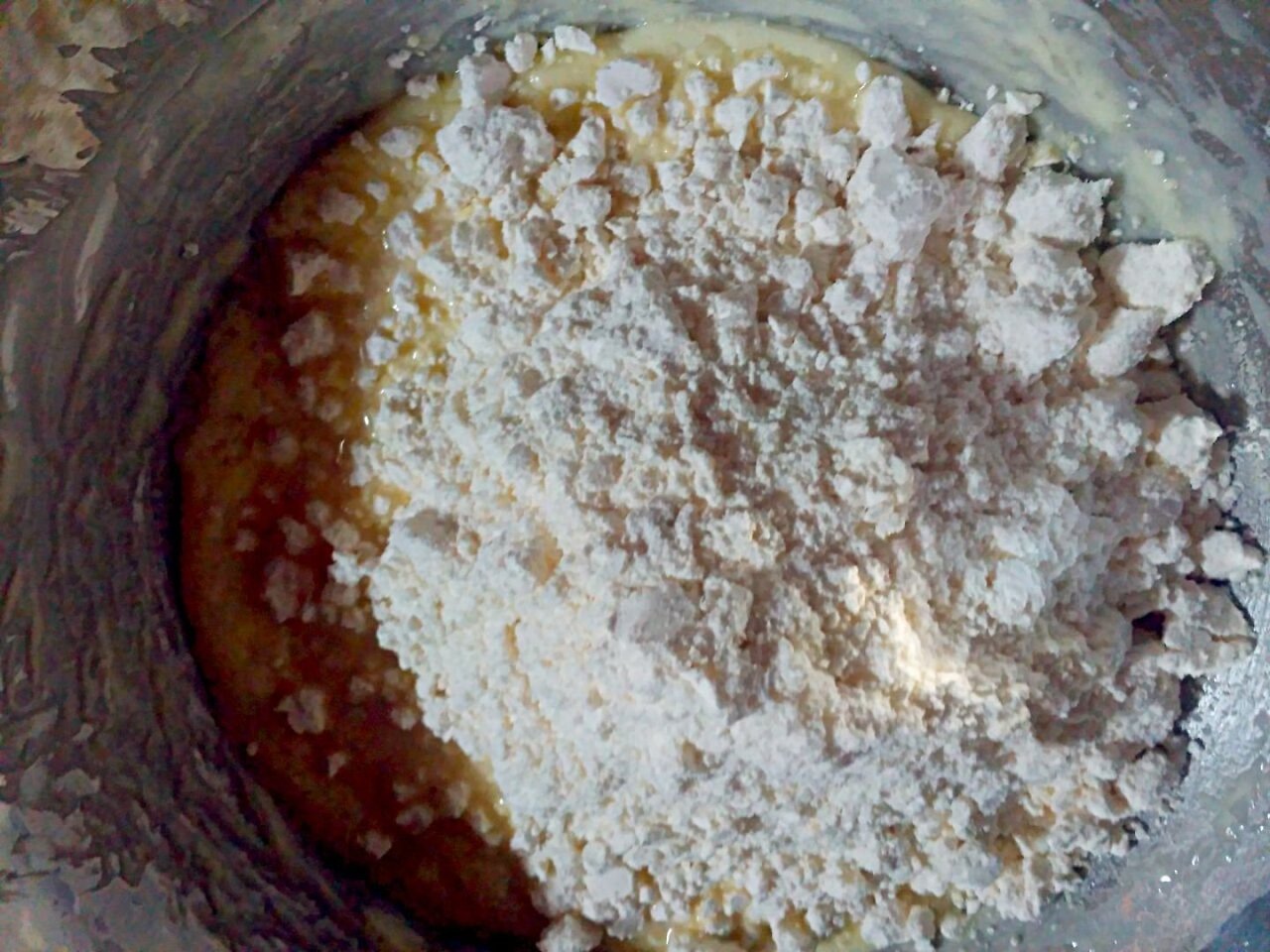 그리고 버터있는 볼에 넣어주시고 호떡믹스가루도 넣어서 잘 치대주세요.