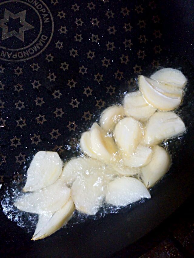 2. 마늘은 편으로 썰어 기름에 튀기듯 구워주세요.