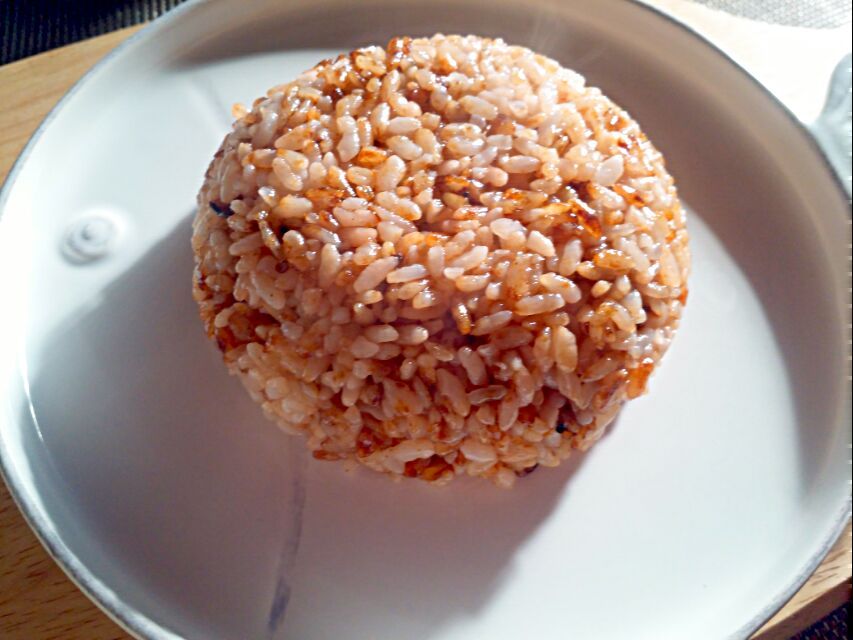 5. 소스만들고 남은 팬에 밥1공기와 버터도 넣고 볶아주세요. 마늘향 고기육즙 간장으로 간도 될 거예요.