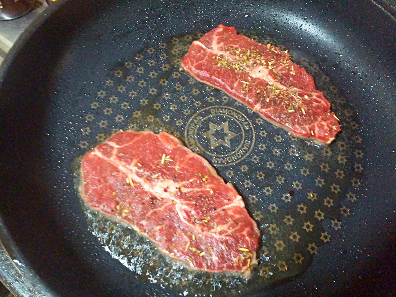 3. 마늘 구운 기름에 고기를 올려 센불에서 앞 뒤로 잘 구워주세요.