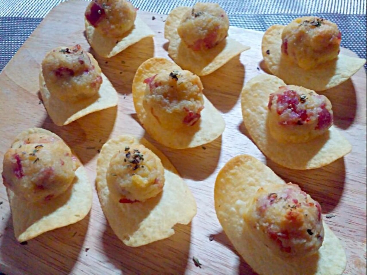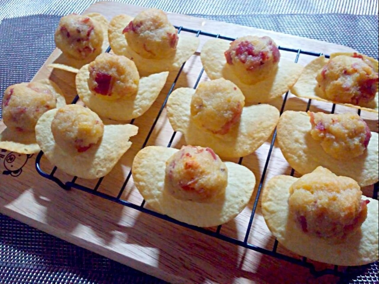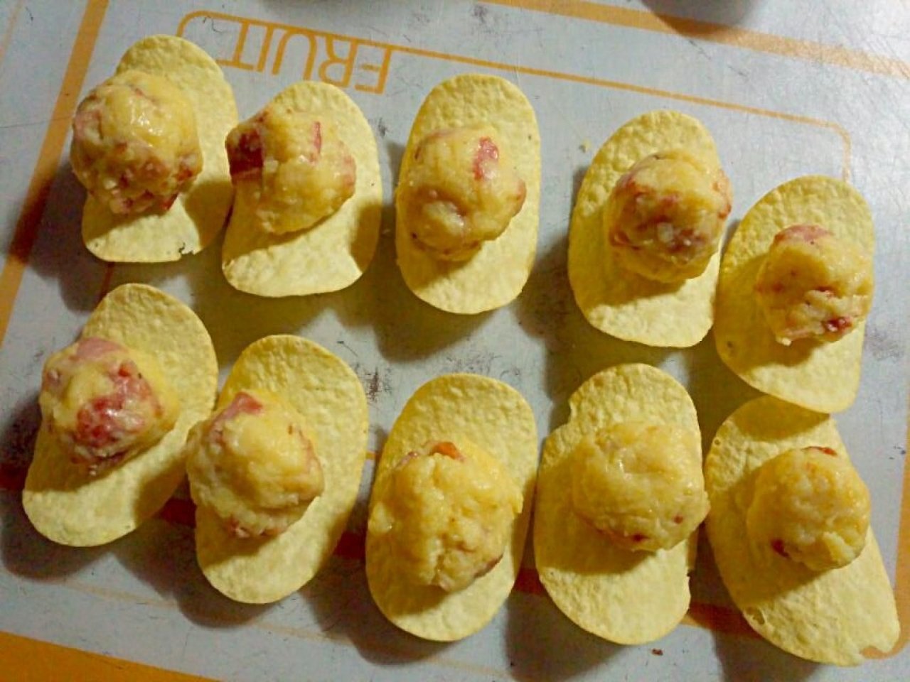 동글동글 떼서 받침용 프링글스에 올려줍니다.