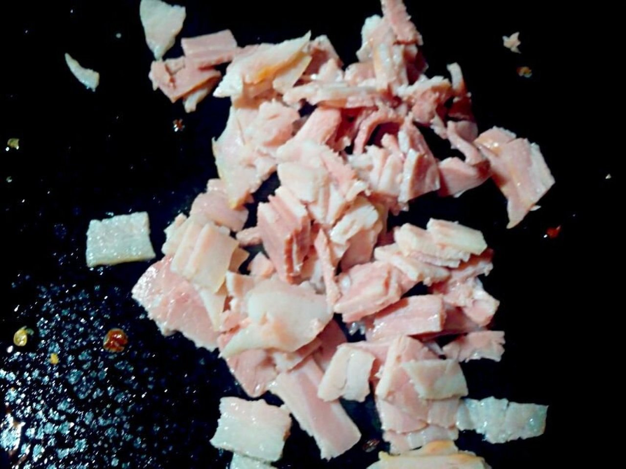 베이컨은 잘게 썰어 구워줍니다.