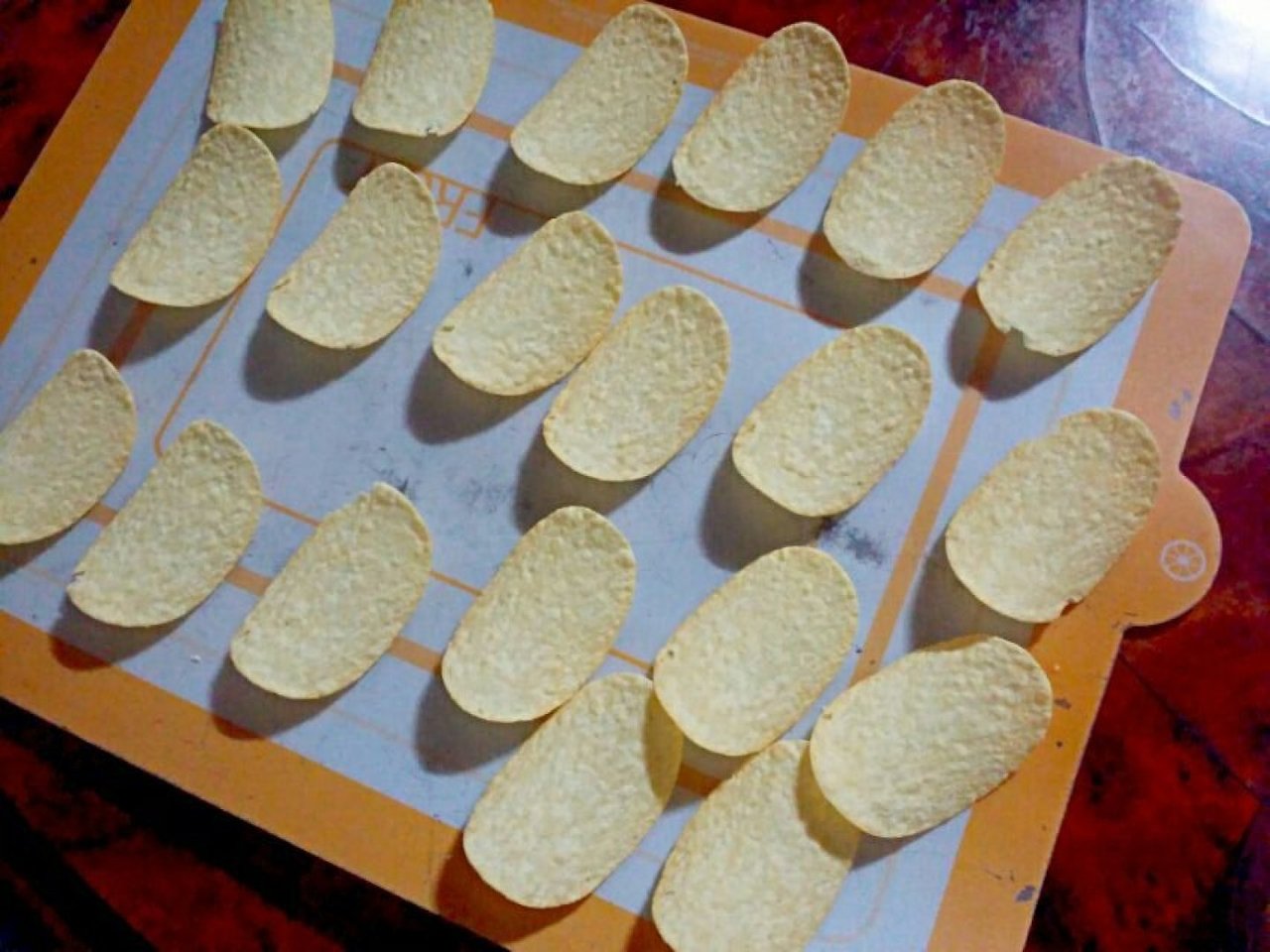 받침용 프링글스는 10개 골라서 깔아줍니다.