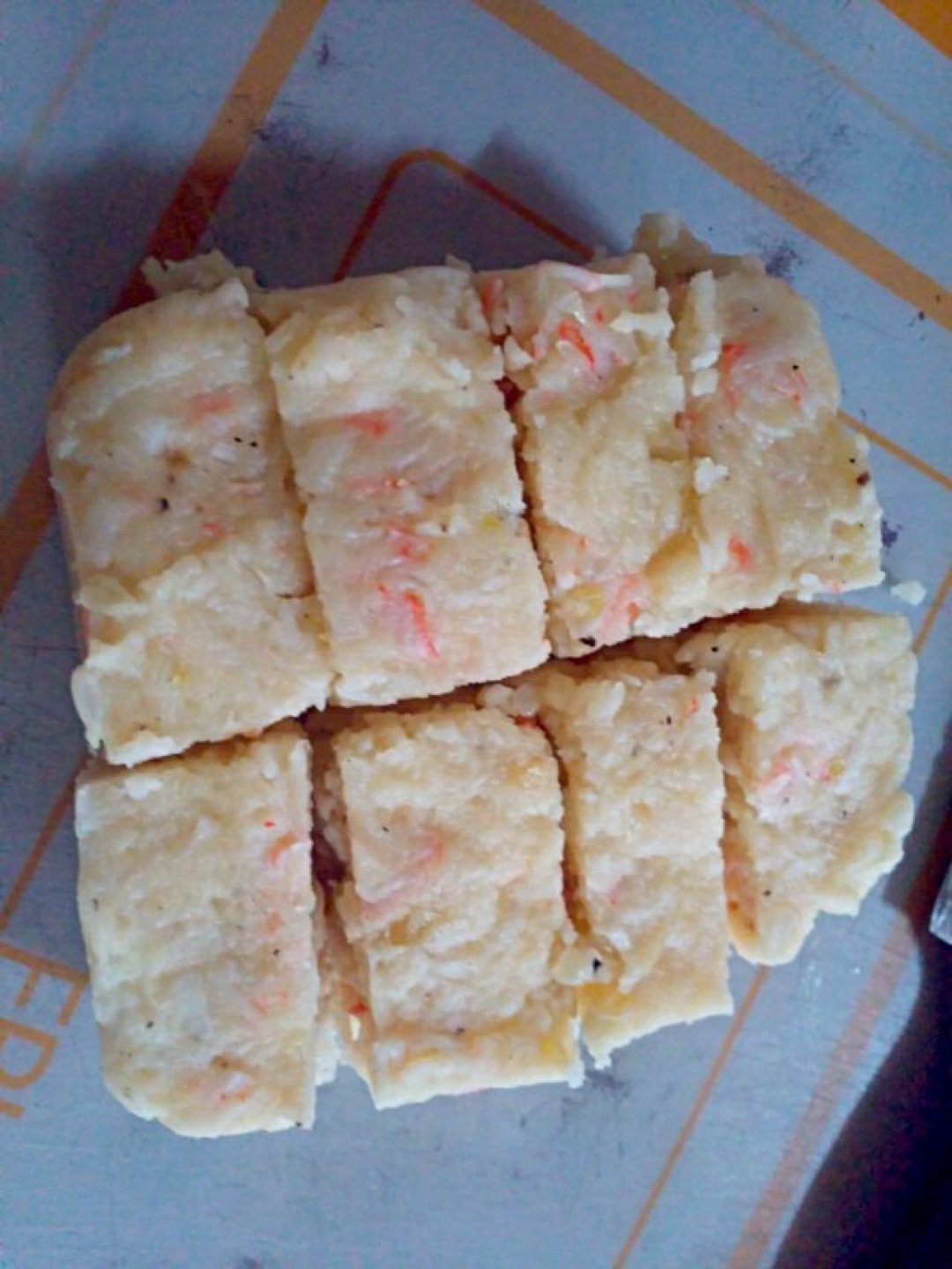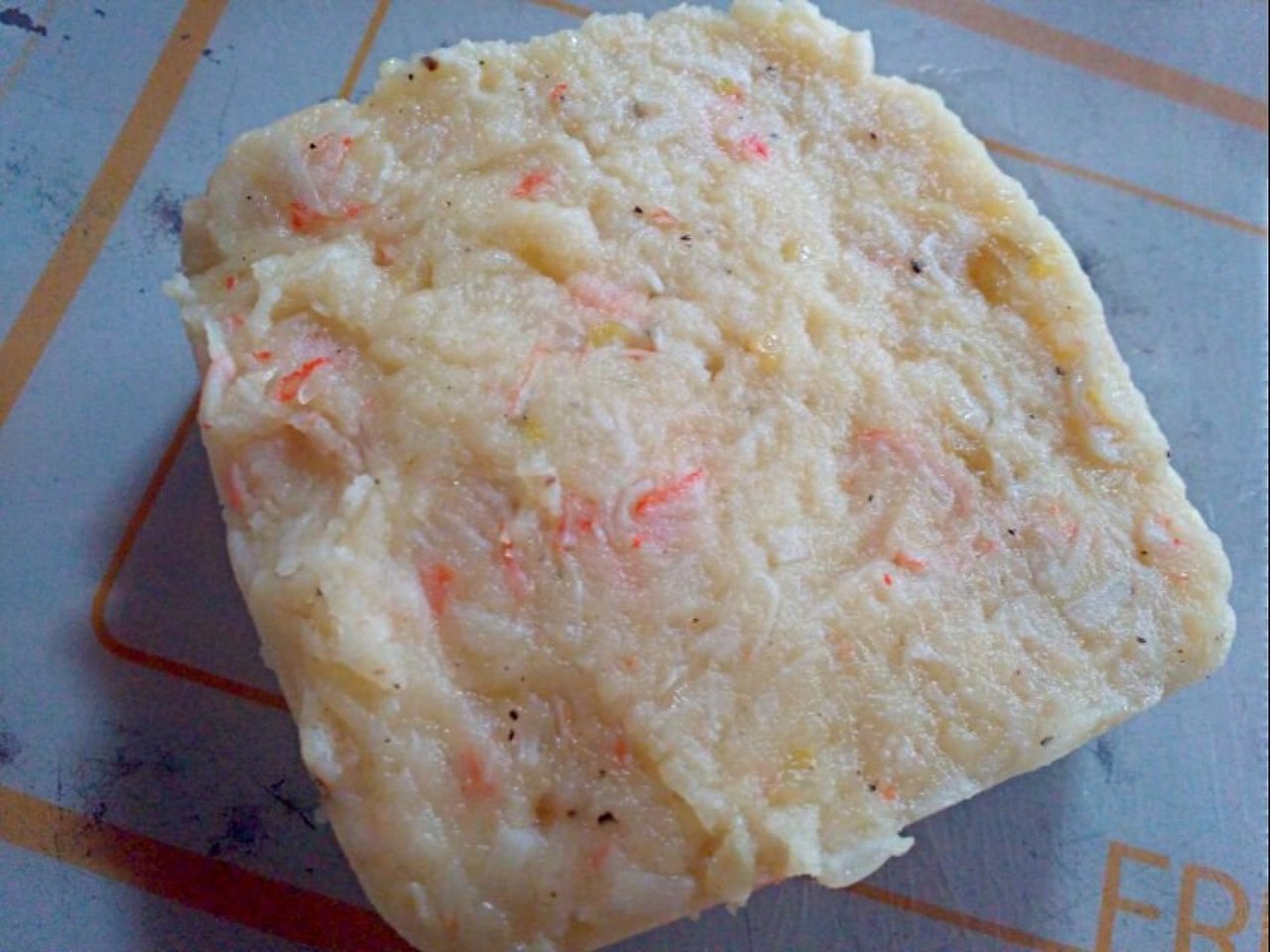 식은 게살크림은 꺼내서 칼로 썰어줍니다.
