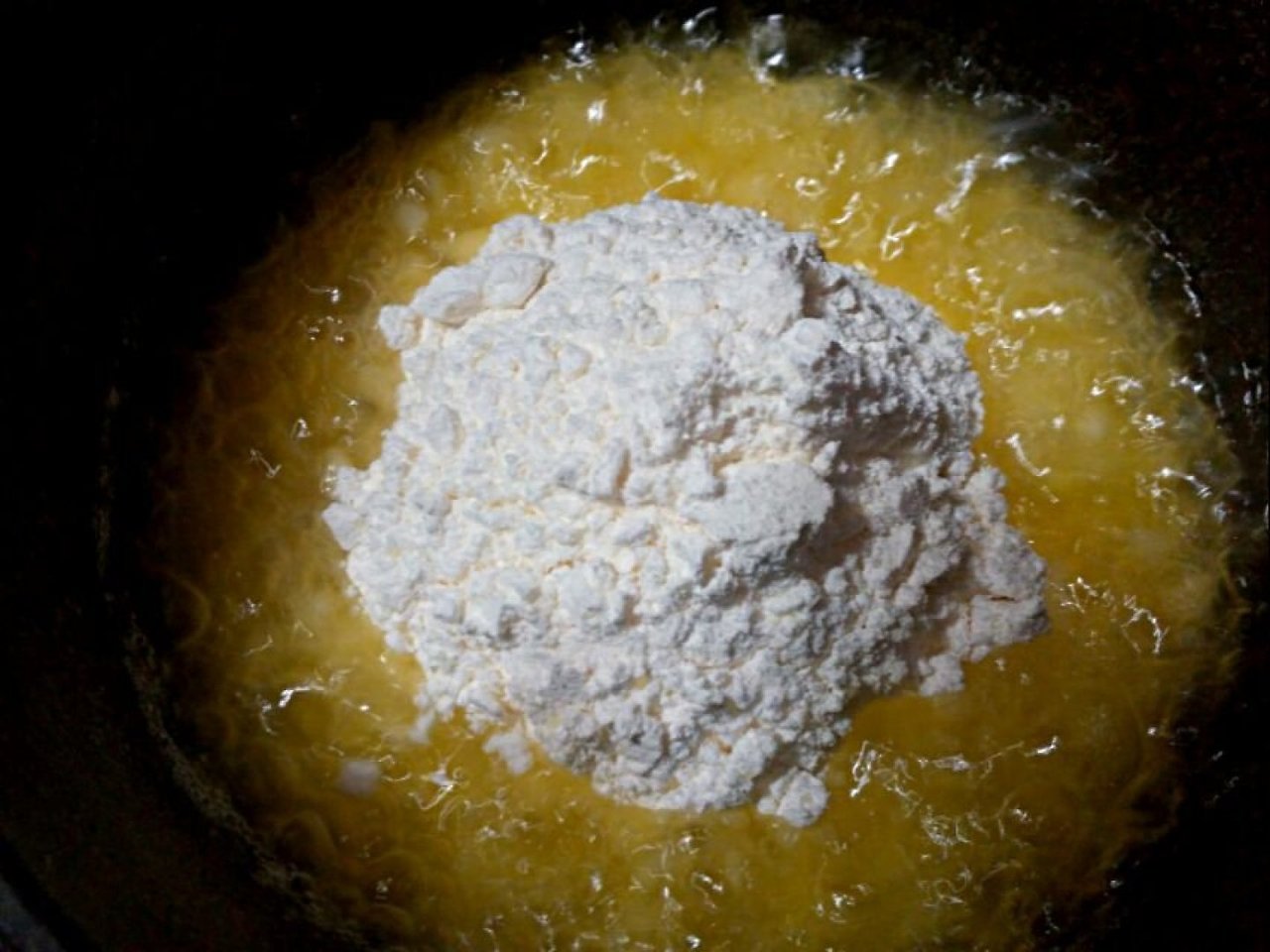 여기에 밀가루1컵을 넣어 루를 만들어줍니다.