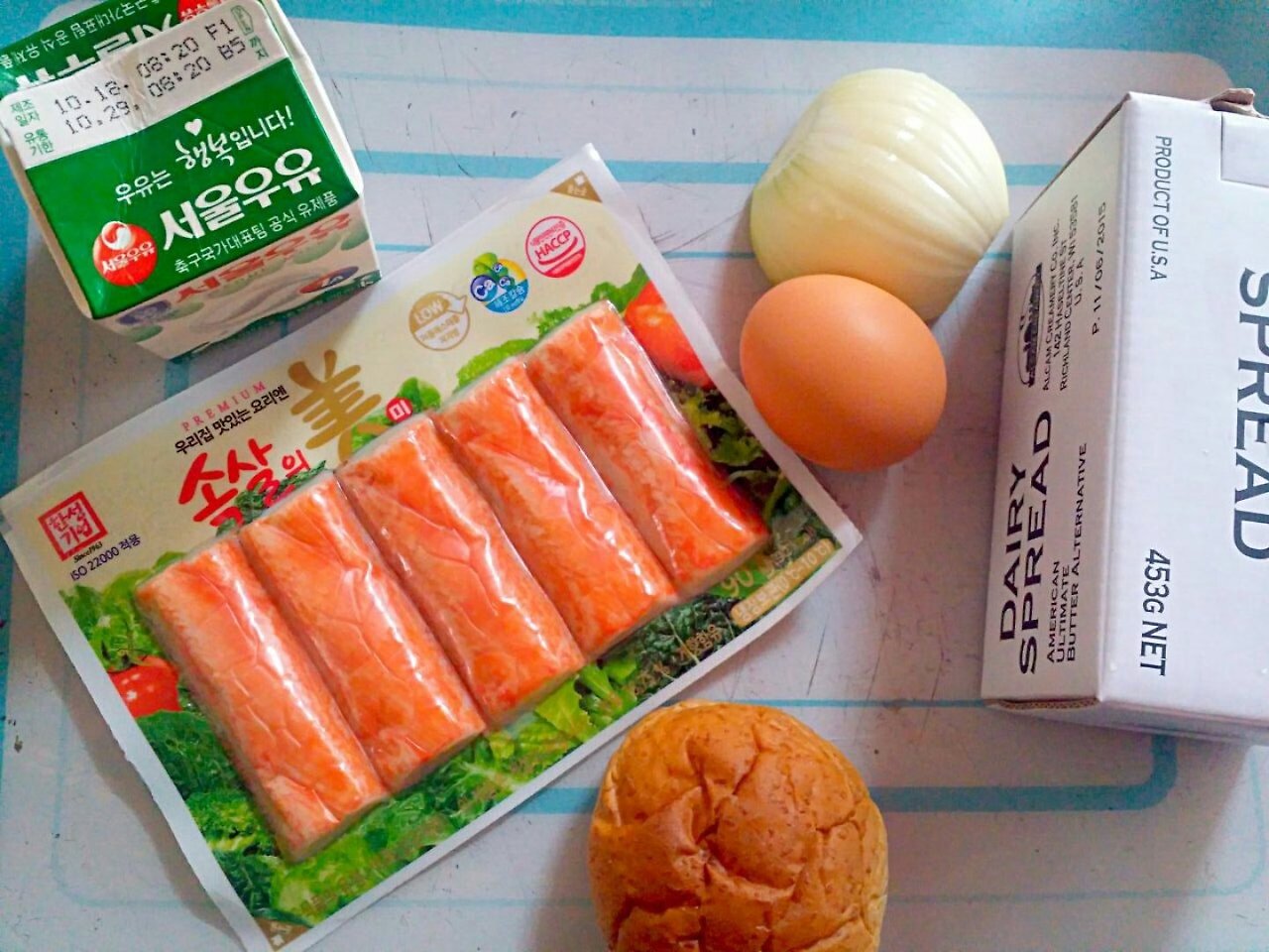 게살크림재료-게맛살 5개 우유200ml 양파반개