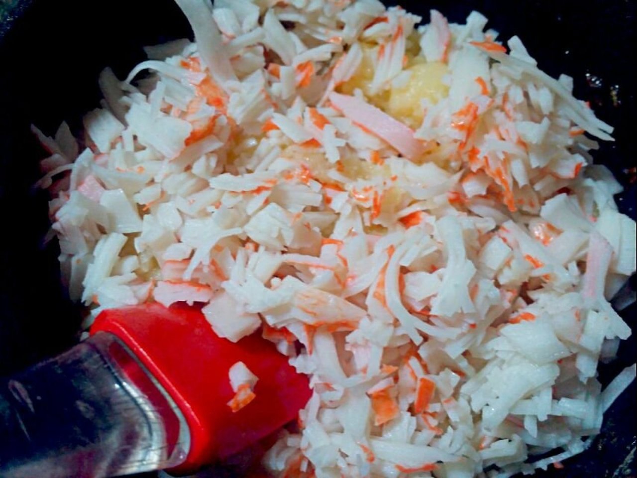 진짜 게살을 넣어도 되긴하지만 그냥 먹기도 아까우니 게맛살을 써서 만들어볼게요.