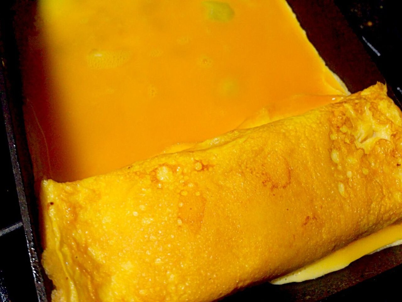 4. 계란물 추가해서 두툼하게 말아줍니다.