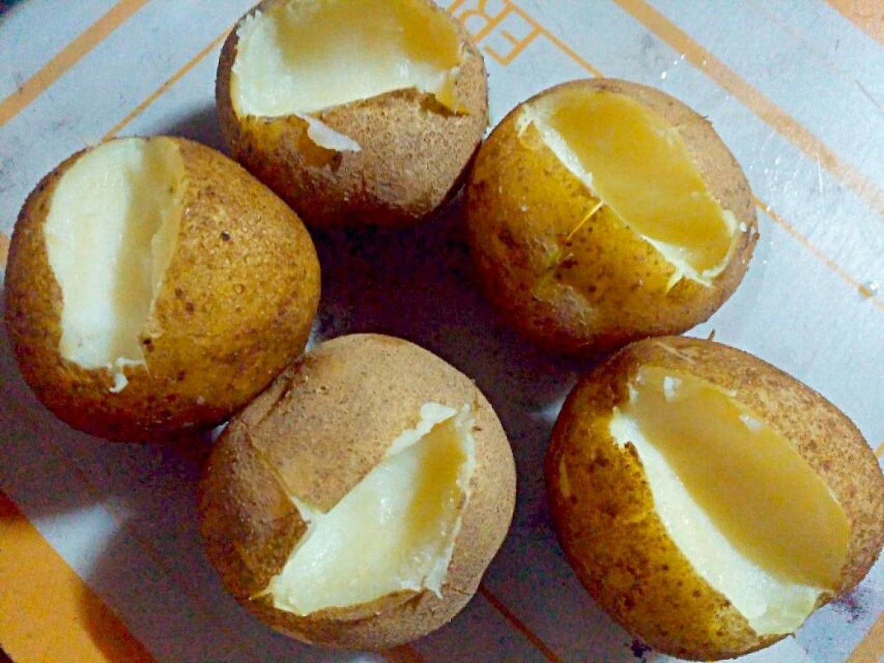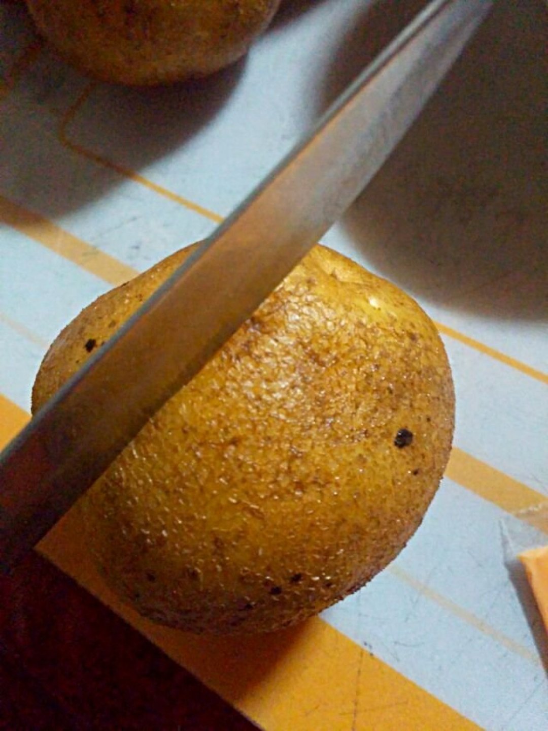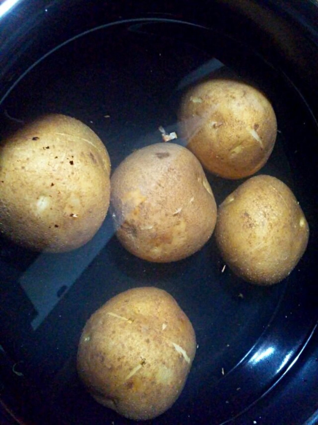 1. 감자는 껍질까기 편하도록 십자로 칼집넣어 삶아주세요. 20분정도 삶아서 약간 설익은 상태로 꺼냅니다.