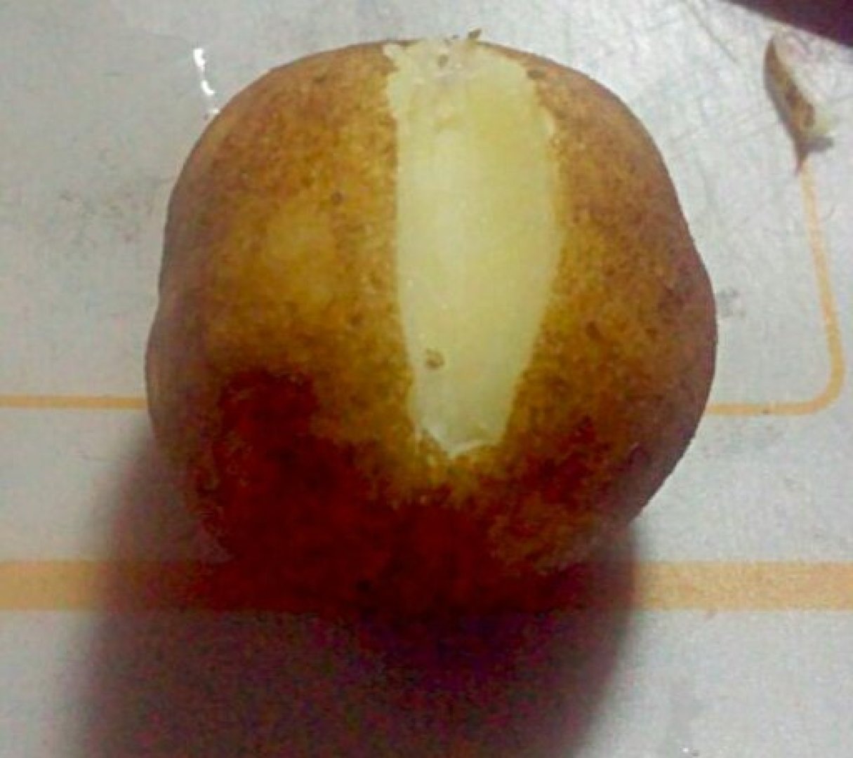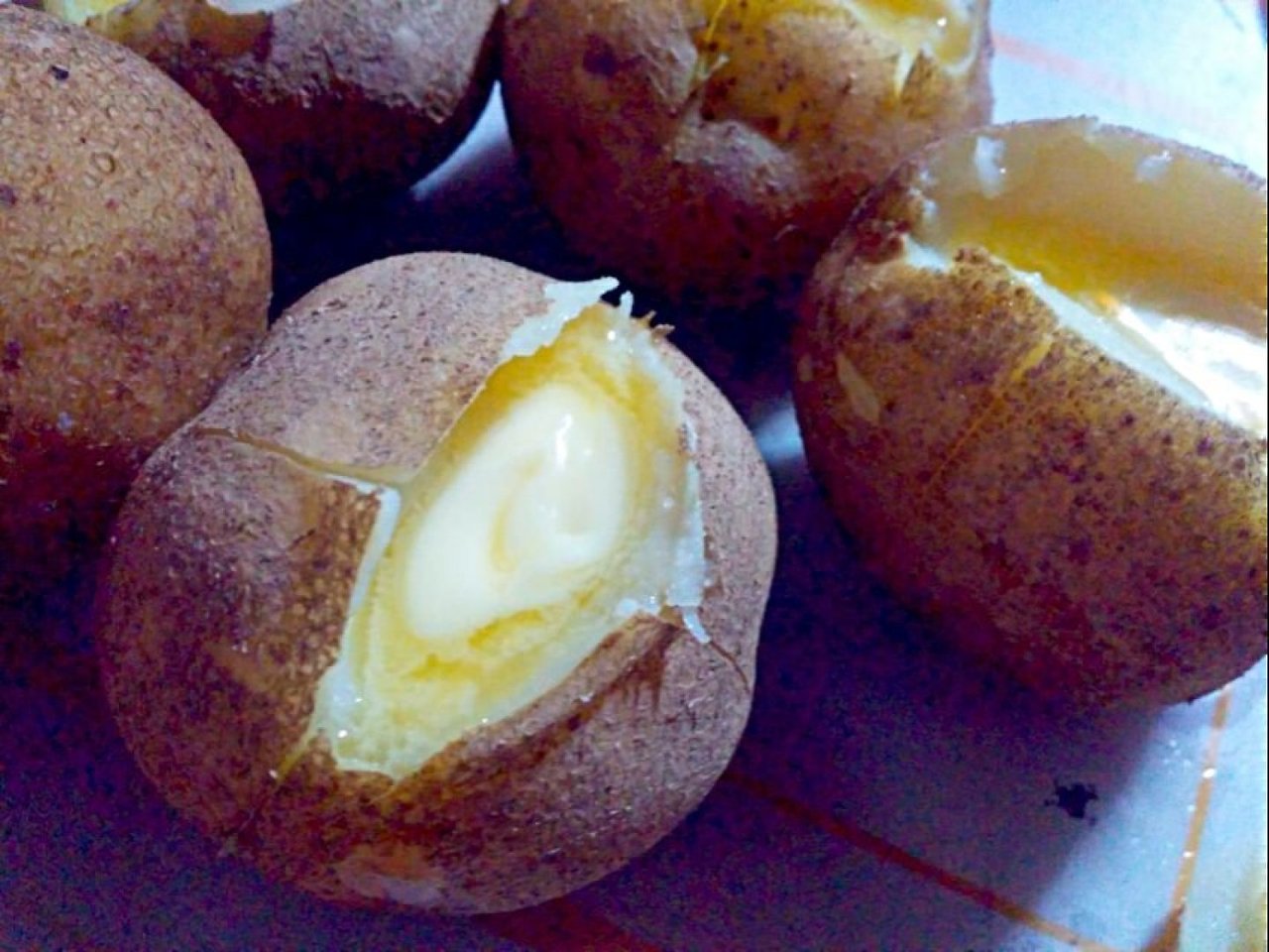 3. 감자가 삶아지면 V자로 칼집을 넣고 티스푼으로 살살 파주세요.