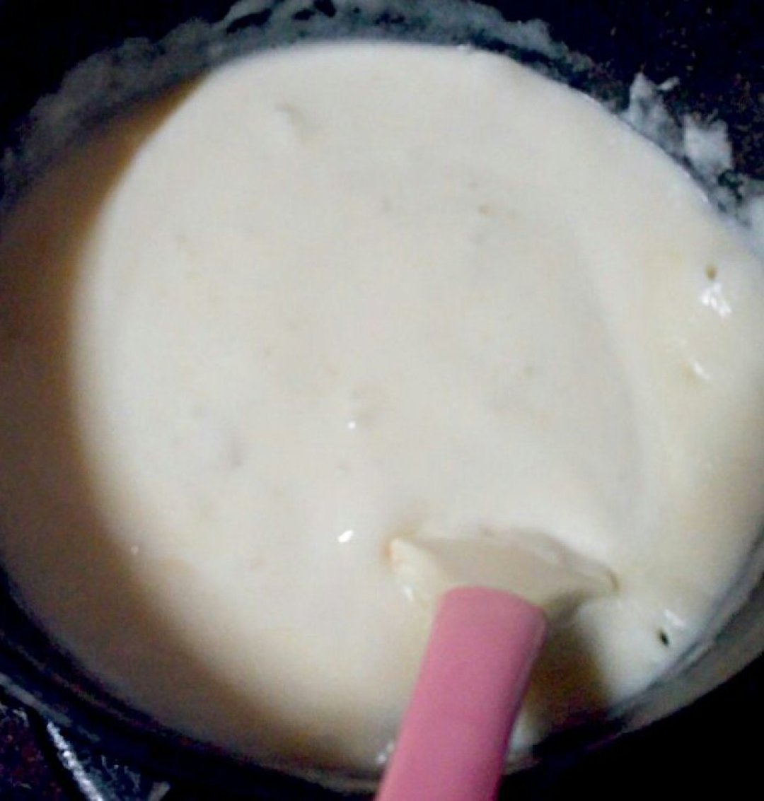 5. 크림1컵에 삶은 감자 반개 넣어서 잘 갈아주신 후 끓여줍니다. 너무 담백해서 소금 간 살짝 해줬어요.