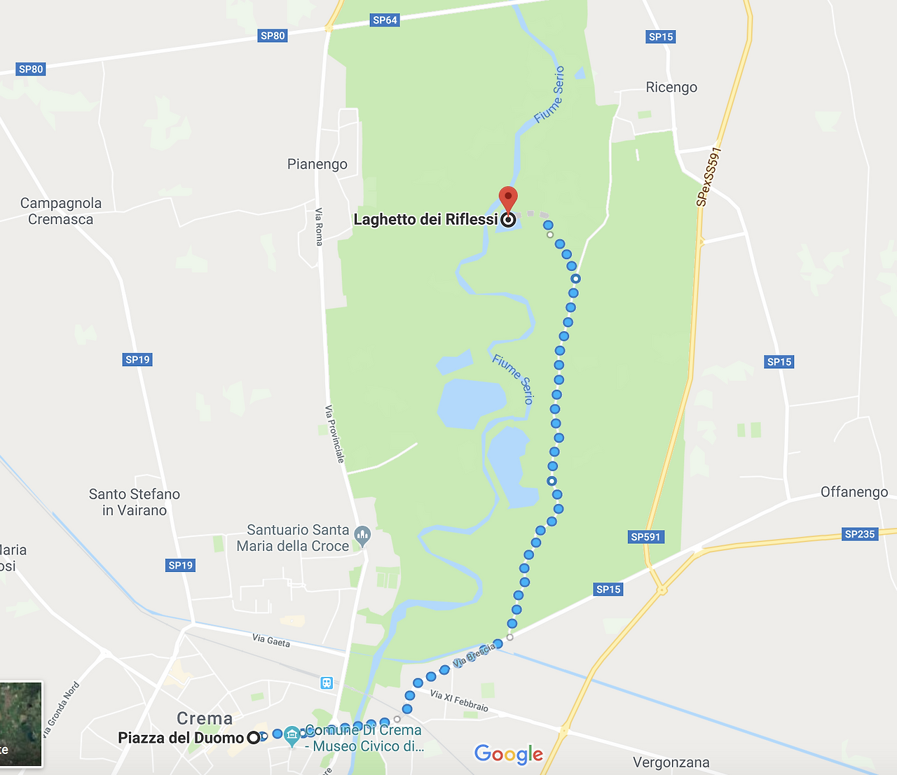 아름다운 강풍경이 보이는 다리를 건너, 시내와 마을을 벗어나 밭이 보이기 시작하면 낡은 교회와 넓고 마당 있는 집이 한 군데씩 보이고, 콘크리트 공장을 지나 왼편 도로로 무작정 달리다 보면 'Ricengo'라고 적힌 표지판이 보인다. 어느 지점에서 나무가 우거진 돌길을 통과하고, 다시 도로로 나와 끝없이 달리다 왼편 숲길로 가면 보이는 두 갈래의 길. 어제 호수에서 빠져나오면서 마주했던 길이 뒤집어진 길. 어제는 어디로 나가야 할지 몰라 운에 맡기고 들어가 본 곳. 어제는 오른편 오늘은 왼편. 그곳은 누군가의 집으로 들어가는 길이었다. (실제로 쭉 들어가다 보면 그냥 길인가 싶어 계속 들어가게 되는데 막다른 곳에 큰 집이 있다. 이 길을 들어갈 때 누군가와 마주쳤는데 아마 집주인이 아닐까 싶다. 근데 나 같은 사람이 많았는지 그냥 지나쳐주었다. 그라치에...) 직진은 리첸고호수로.