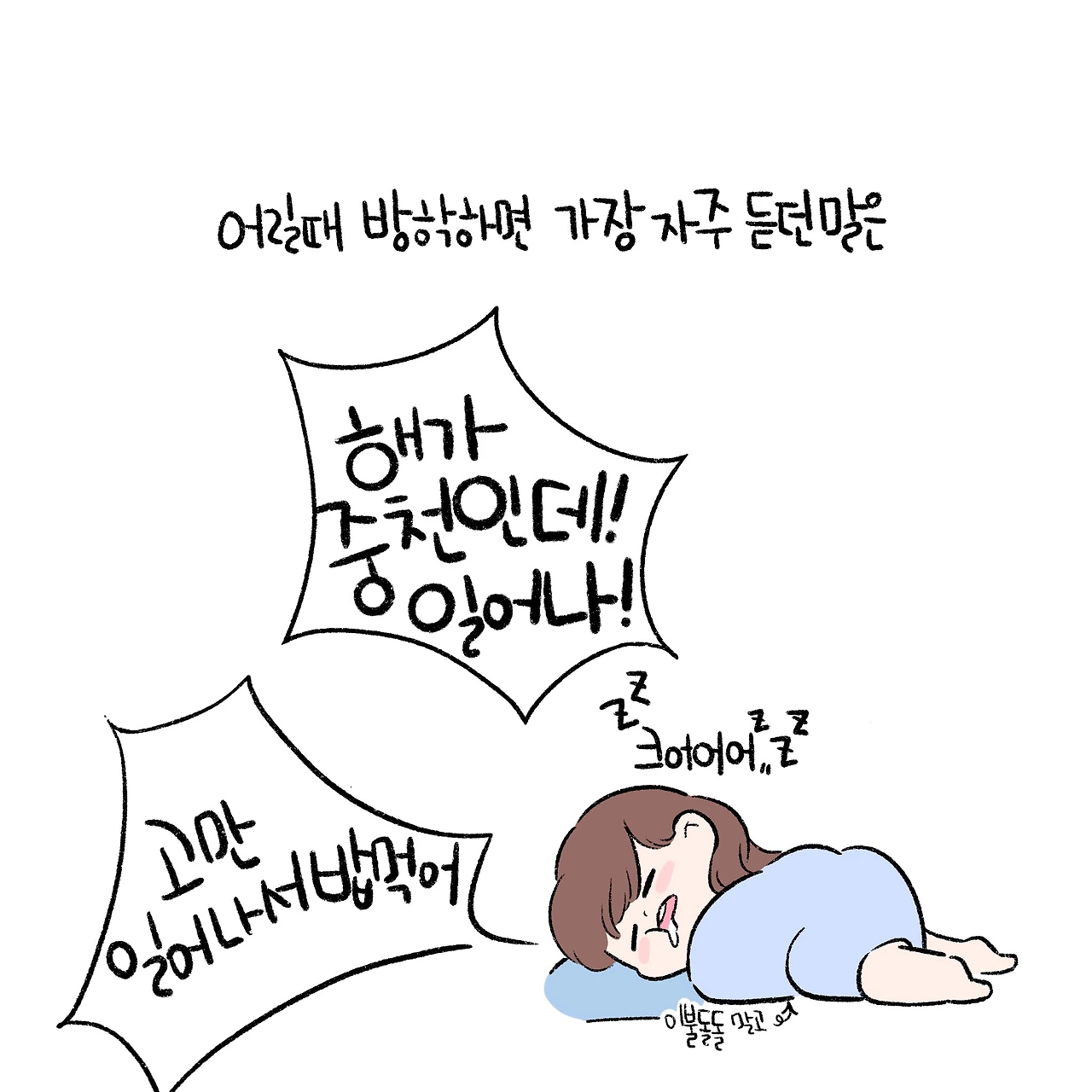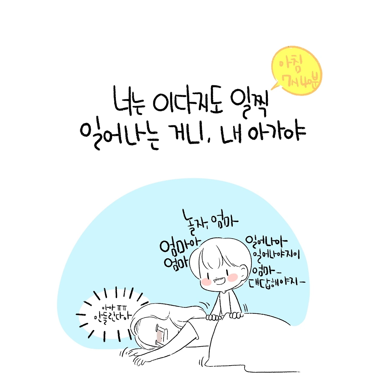 그런 아이가 자라 어른이 되어 한 아이의 엄마가 되어서도 사람은 크게 변하지 않아 늦잠을 자고는 하는데,