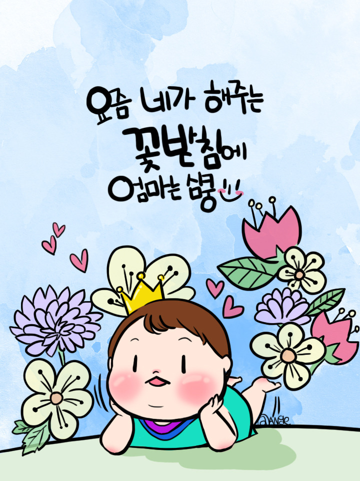 네가 꽃받침을 하고 엄마를 보고 있어서
