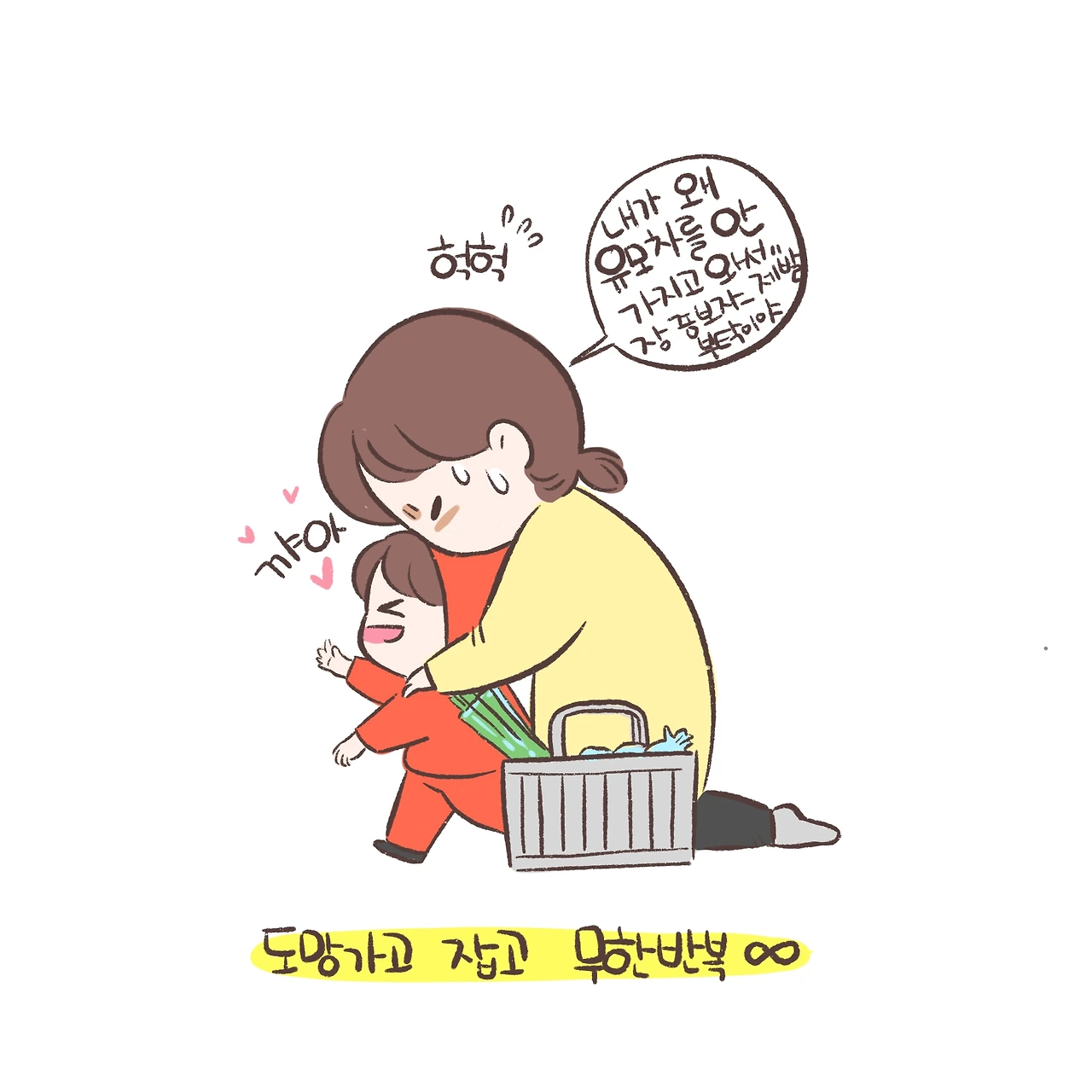 한눈 팔면 큰 일 나는 아기와 함께 살고 있습니다.