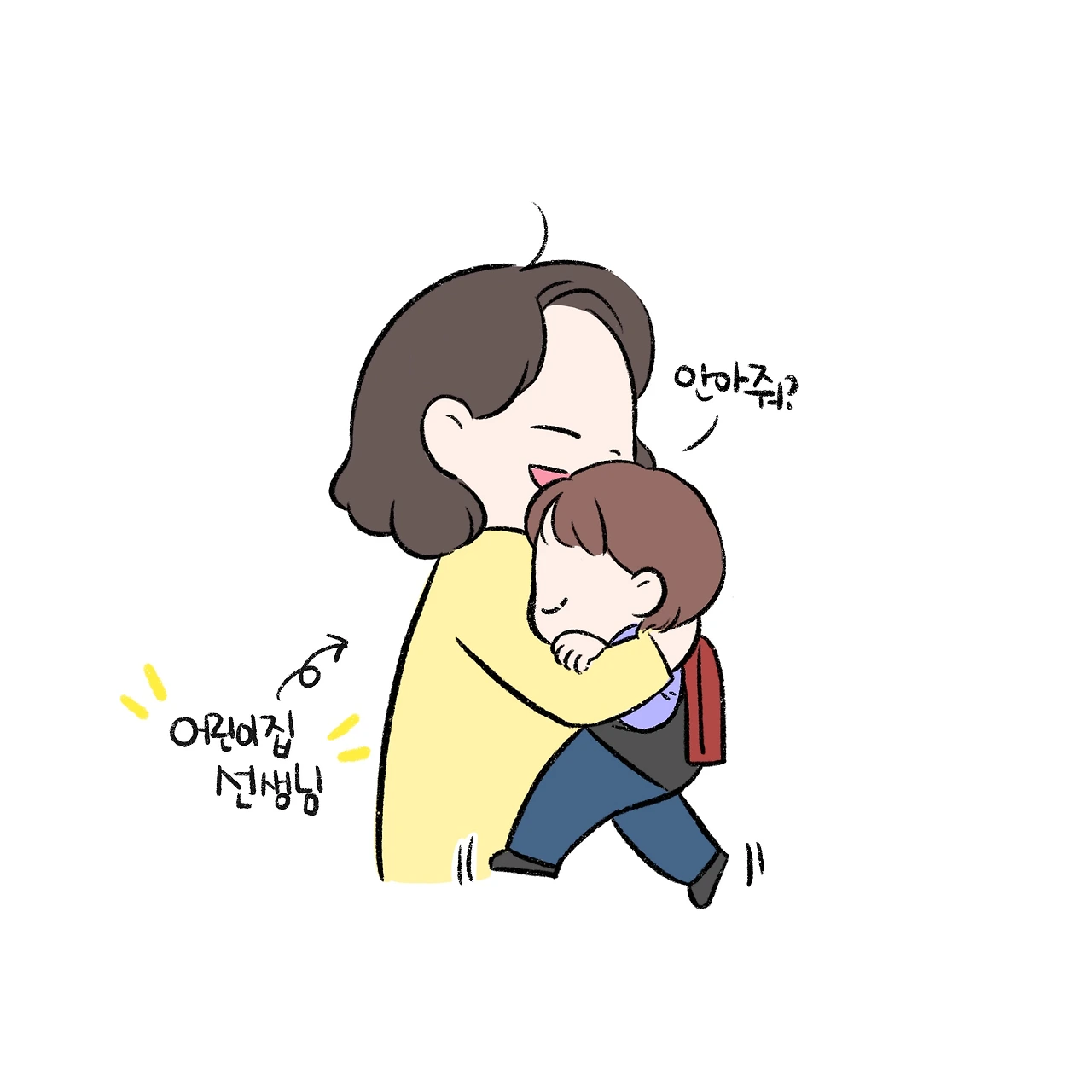 다음날부터는 어린이집 선생님 품에 쏙 안겨 뒤도 돌아보지 않고 등원했습니다.