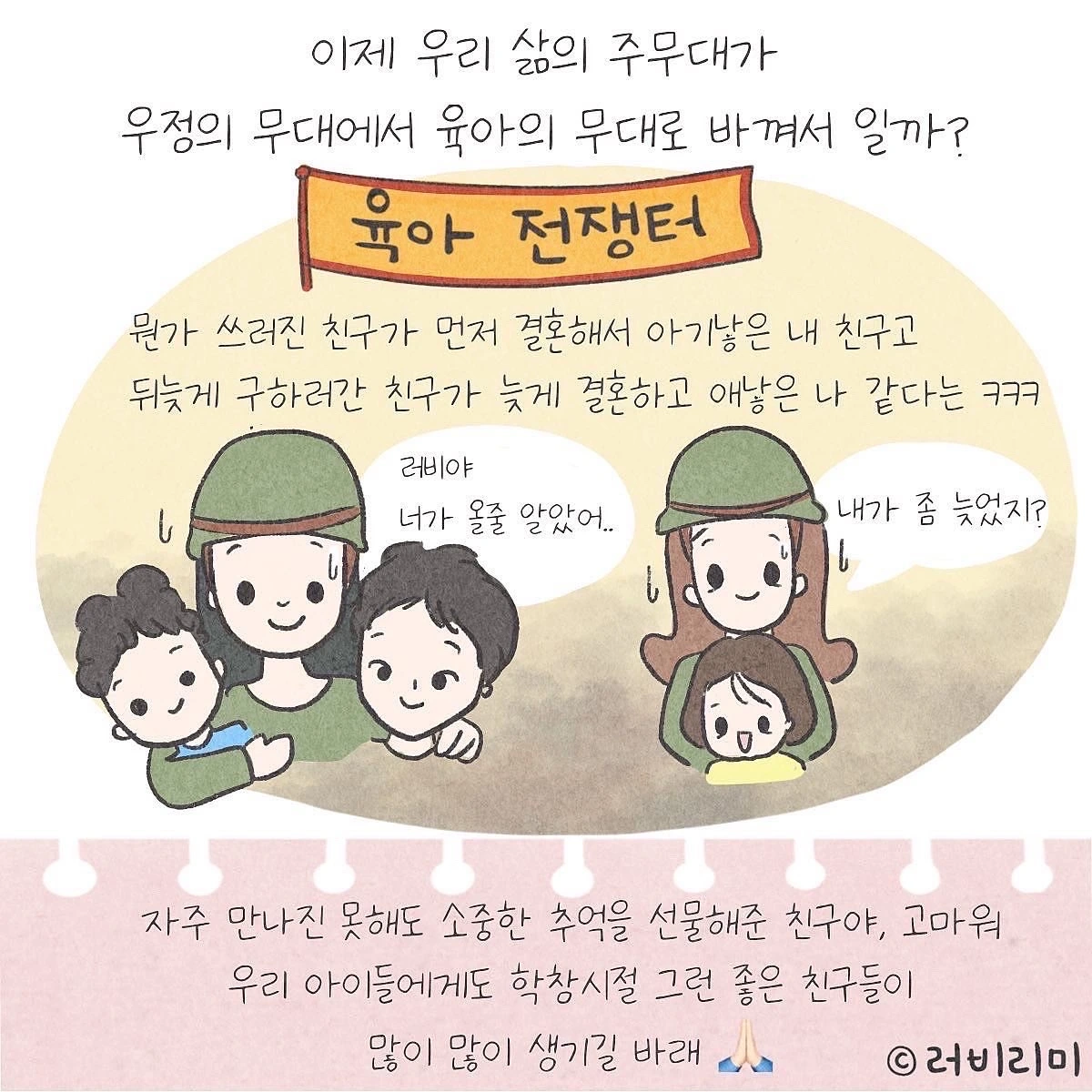 지금은 우정의 무대에서 육아 전쟁터로 나의 주무대가 바뀌었지만 소중한 친구들을 생각할때마다 늘 고맙고 든든하다.
