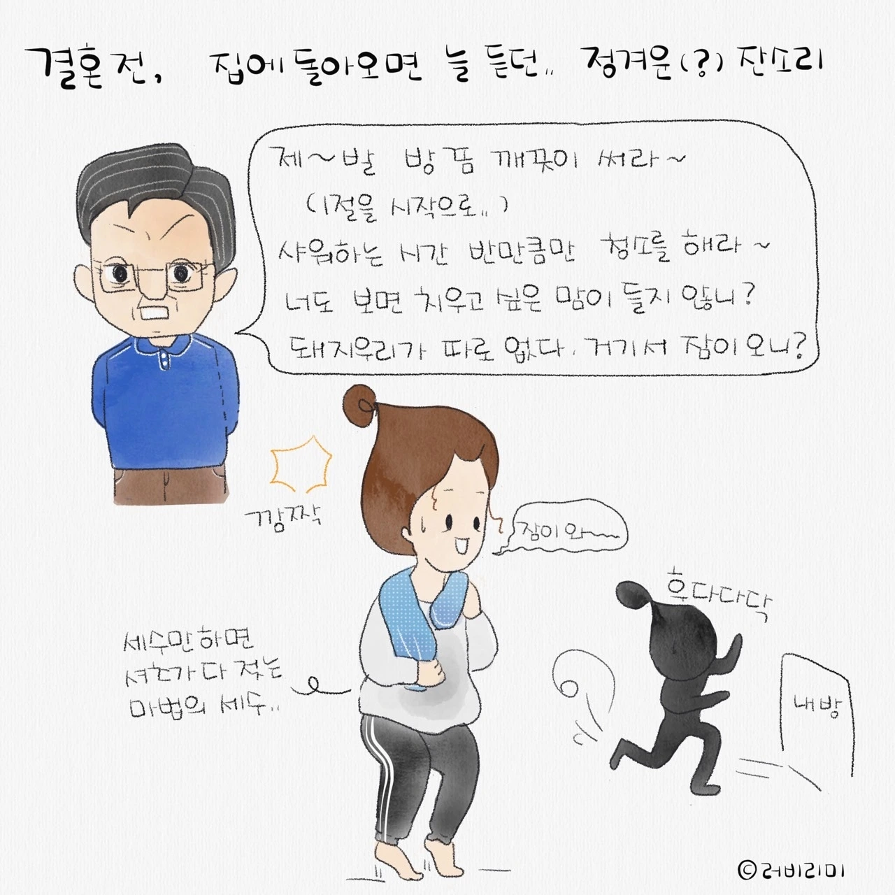 “샤워하는 시간 반만큼만 청소를 해라”(2절)