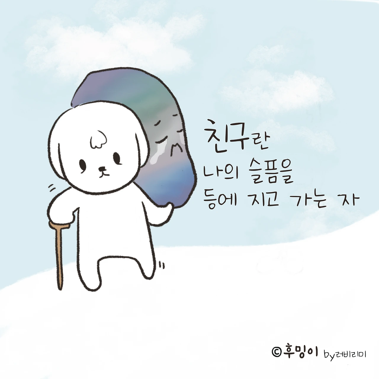 어릴적엔 아는 사람이 거의 친구였다면나이가 먹을수록아는 사람은 많아지는데진짜 친구라고 생각되는 사람은 상대적으로 줄어드는것 같다. 나이가 든다는게 이런걸까?ㅎㅎ그만큼 친구라고 생각하는 존재들이 더 소중하기도 하고더 잘해주지 못함이 미안하기도 하고.. 친구는 내 슬픔을 등에 잔뜩 지고 가는데나는 봉다리에 살짝 들고 가진 않는지 반성의 시간