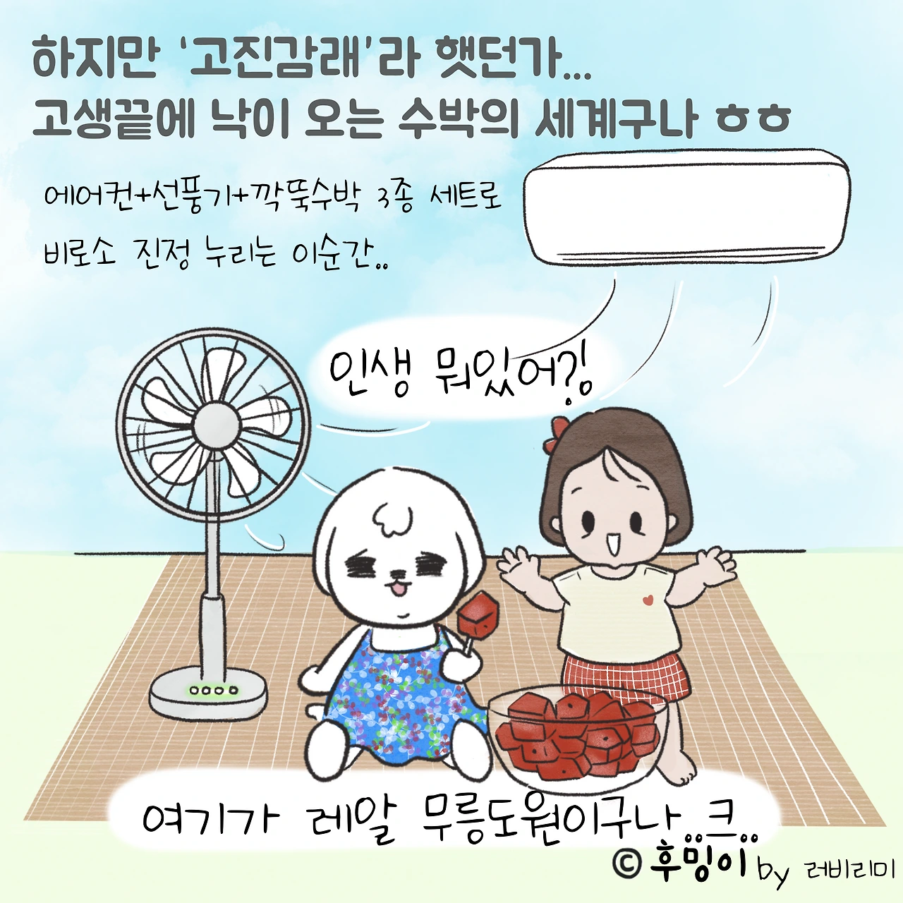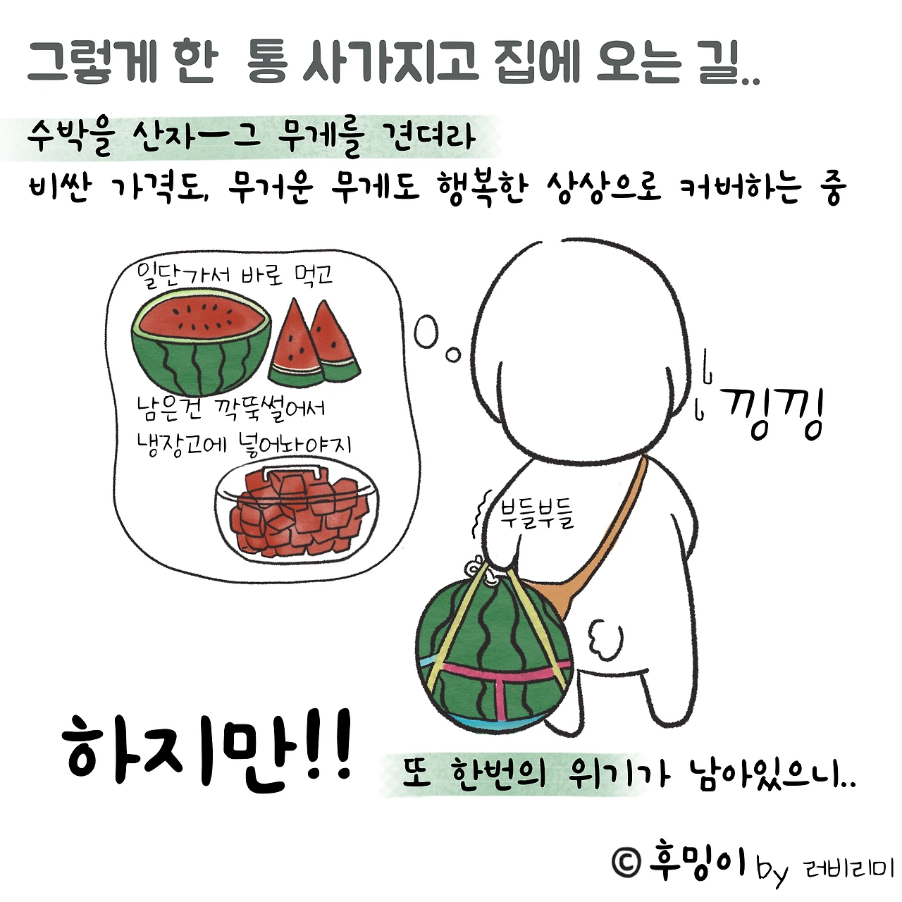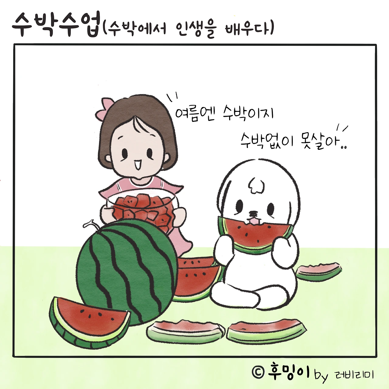 수박에서 인생을 배우다.후밍이가 전합니다.수박수업수박을 먹으려는 자-그 무게를견뎌라 세상에 공짜가 어딨니..맛있게 먹는 기쁨뒤 따라오는 처치곤란 껍데기들..그리고 레알 고진감래..비로소 찾아오는 신선놀음 앞으로도 여름을 부탁해 #후밍이 #미니 #수박 #여름 #summer