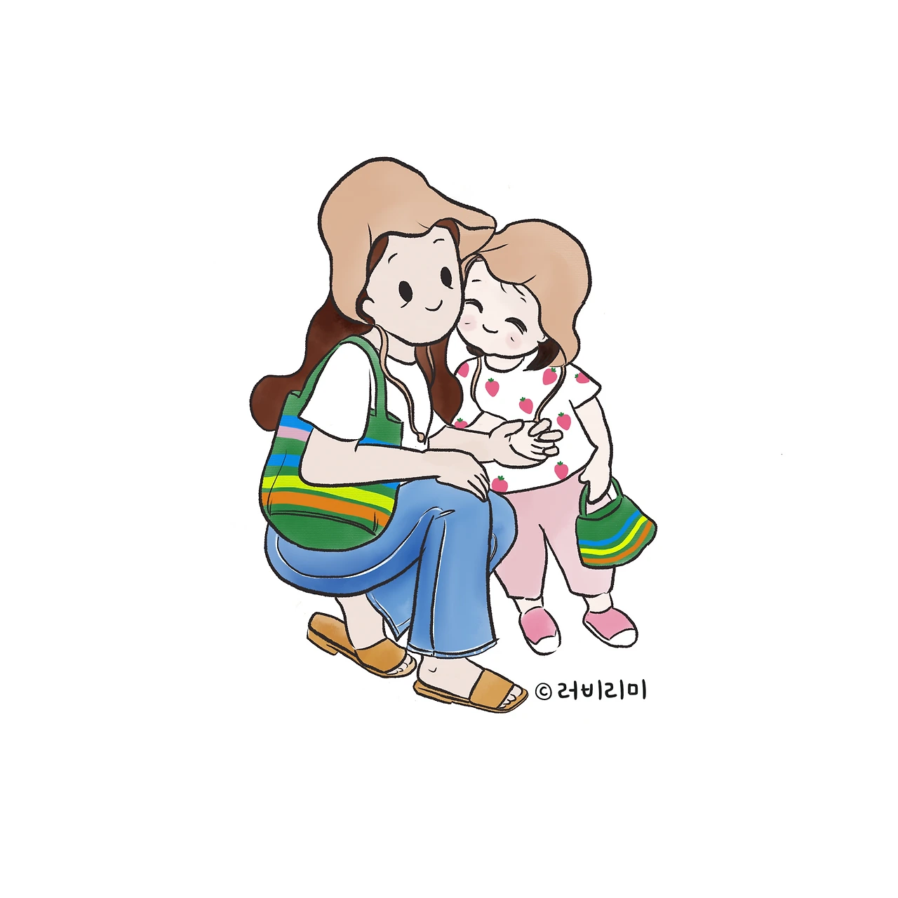 To my daughter #환상의짝꿍(딸에게 전하고 싶은 메세지를 종종 일러스트로 남겨두려고요^^)저의 로망이이었던 커플룩, 커플템 넘나 좋아요봉인해제 어머님이 미니 모자랑 가방이랑 똑같이 제 모자랑 가방도 만들어주셨네요 헤헷 득템모녀 #러비리미 #tomydaughter #엄마와딸 #커플룩 #커플템 #딸바보