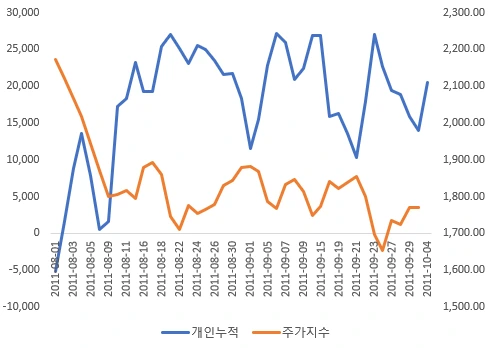 [2011년 8월~9월 유럽위기 당시, 개인투자자 누적순매수]