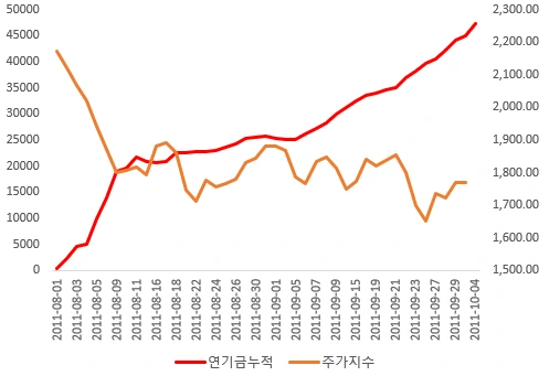 [2011년 8월 당시 연기금이 증시 하락의 안정판 역할을 하였다]
