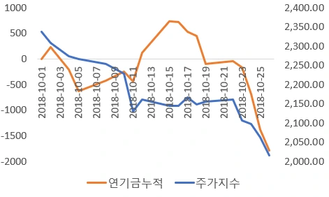 하지만, 이번 10월 약세장에서 연기금은 오히려 매도세를 만들고 말았습니다. 과거 2011년, 2008년처럼 증시가 하락할 때 비빌 언덕이 되어주었던 연기금의 매매가 사라지면서 증시는 허무하게 밀리는 모습이 반복되고 말았습니다.