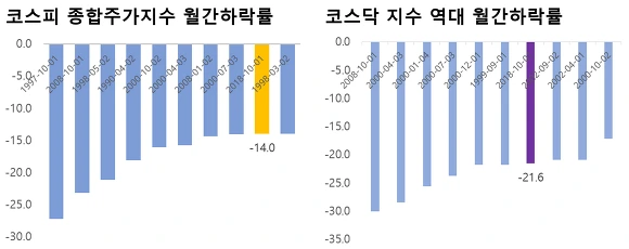 [코스피와 코스닥 이번 10월 하락률은 역대급]