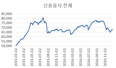 [신용융자 2015년 급증 급감 이후의 1년간 추이,원데이타 참조 : 금융투자협회 통계]