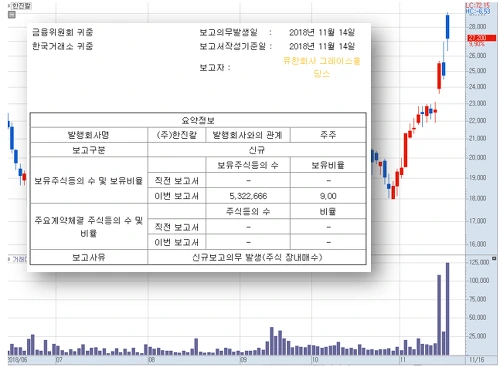 사회적인 물의를 계속 일으켜온 한진그룹 오너일가 그로 인해 추락한 민심 분위기 속에 행동주의 헤지펀드의 경영권 공격이 시작되었습니다. 어제 그레이스홀딩스(KCGI의 투자목적 회사)가 한진칼의 지분 9%를 확보하면서 한진칼의 2대 주주로 올라섰고 공시를 통해 "경영목적에 부합하도록 관련 행위들을 고려한다"는 경영권 장악을 위한 지분 확보임을 천명하였습니다.