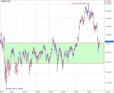 [주가지수 2000~2100p를 2010년 내내 이어오긴 하였는데...]
