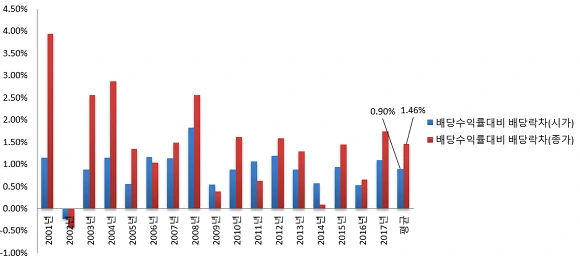 ※ 2001년~2017년 배당락일 시가와 종가의 전일대비 등락률 평균