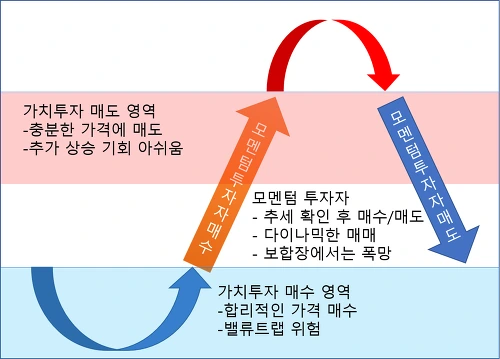 [가치투자와 모멘텀 투자 개념도]
