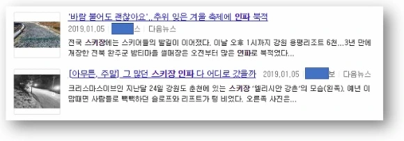 [같은 날,같은 상황을 두고 극단적으로 다른 경제 관점, 자료참조 : 다음뉴스검색 "스키장 인파"]