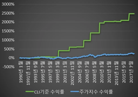 [OECD 한국CLI기준으로 발표시점(실제데이타와 2개월 후)에 매매하였을 때의 시뮬레이션 결과]