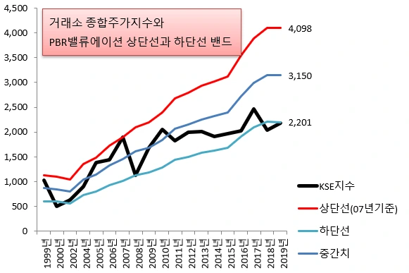 [한국 증시는 2000년 IT버블붕괴 2008년 금융위기 직후 수준으로 저평가되었다]