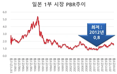 [일본 증시 1부의 PBR레벨 추이, 자료참조 : TOPIX]