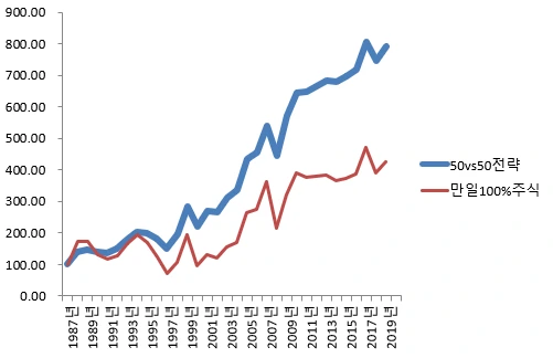 [간단한 50vs50 자산배분전략으로도 장기적으로 유의미한 성과를 만들 수 있다]