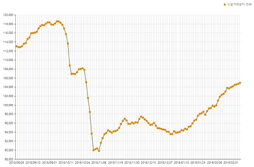 작년 10월 하락장 당시 증시토크에서 증시 단기 바닥을 위해서는 2018년 초 신용융자 규모인 10조원까지는 신용융자가 줄어들고 가장 마음 편한 신용융자 바닥규모는 7조원선이라는 의견을 피력한바 있습니다. 그 즈음 신용융자 규모는 9조원에서 바닥을 만들었고 작년 연말 이후 시장 또한 바닥을 만들었습니다.
