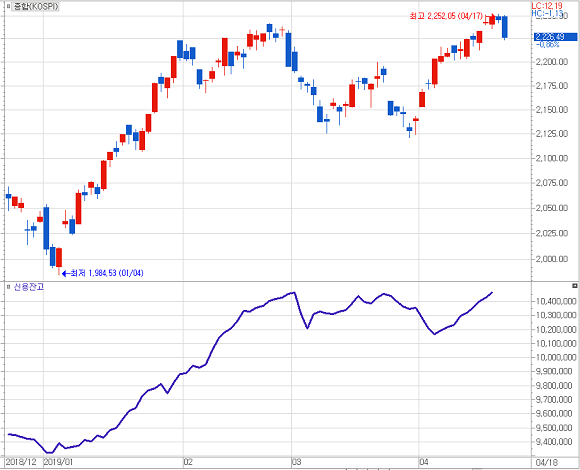 [주식시장 상승 분위기에 은근슬쩍 신용융자도 증가하였고...]
