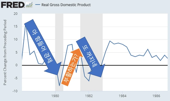 [1980년대 초 미국에서 발생한 더블딥 경제상황, 자료참조 :FRED]