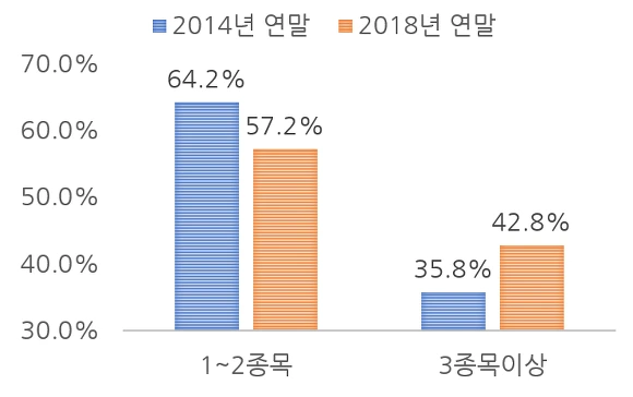[2014년과 2018년 12월 결산법인 보유종목수별 실질주주 분포 : 원데이타참조 : 한국예탁결제원]