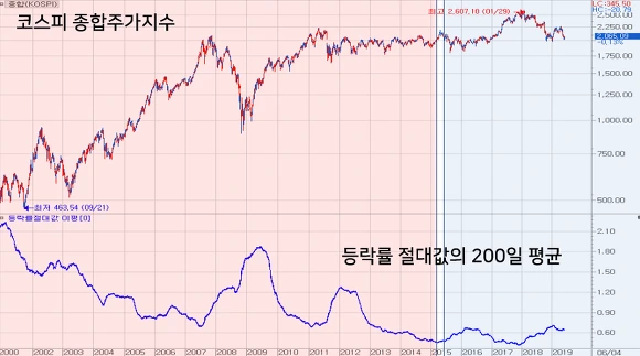 (개별 종목의 경우는 재료에 따라 하루만에 상하한가를 오갈 수 있기에 변동성이 확대되게 됩니다. 반대로 시장지수는 가격제한폭 내에서 재료가 반영되게 되지요)